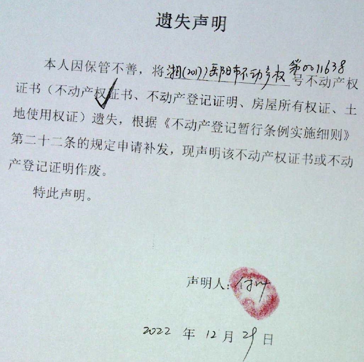 遗失声明(付叶)