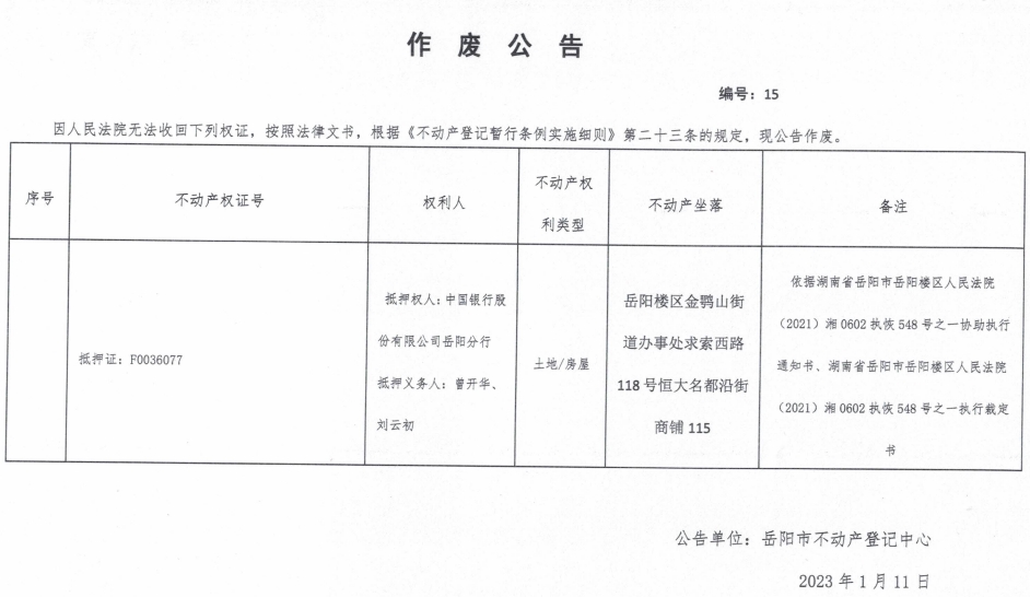 作废公告 编号:15(中国银行股份有限公司)