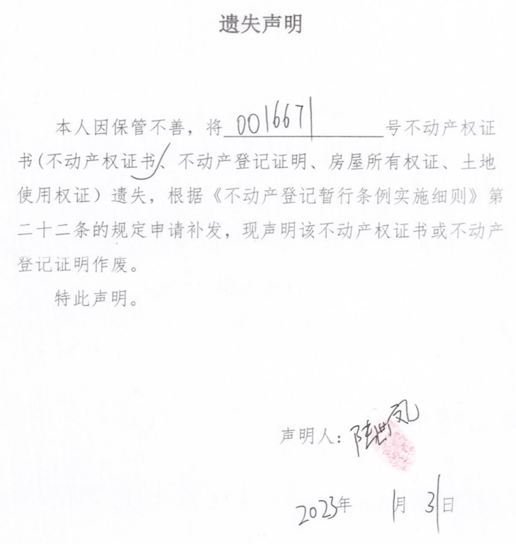 遗失声明(陆世凤)