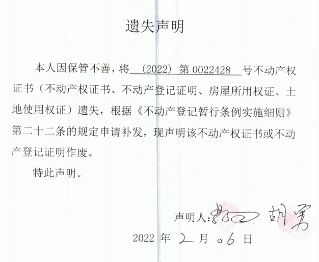 遗失声明(蔡园、胡勇)