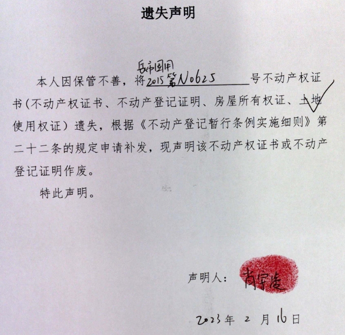 遗失声明(肖宇凌)