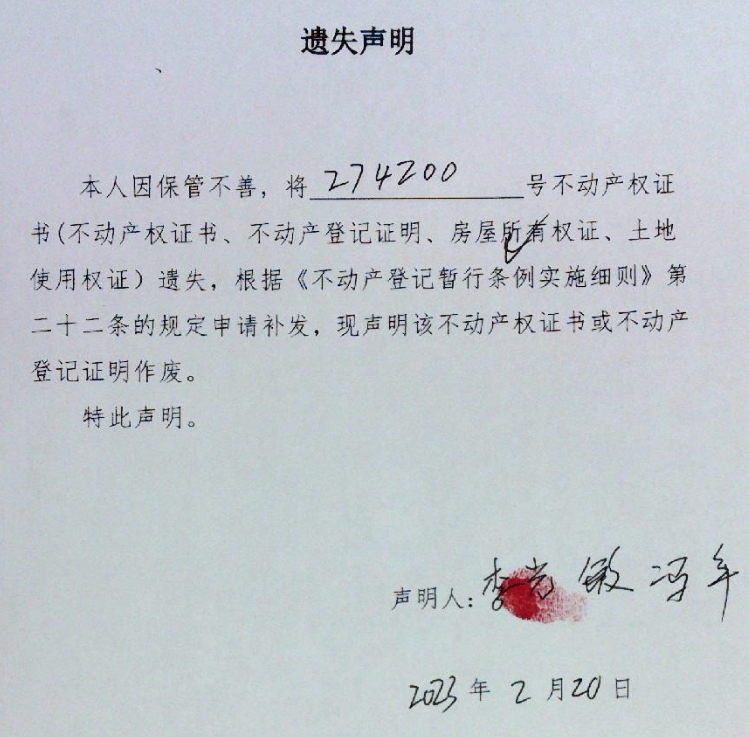 遗失声明(李光敏、冯年)