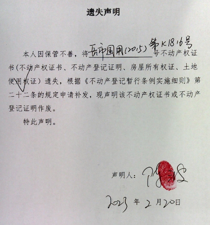 遗失声明(陈波)