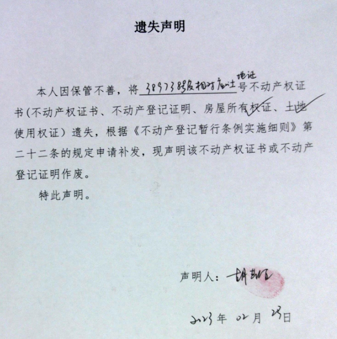 遗失声明(胡芝谊)