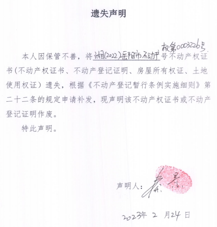 遗失声明(秦景)
