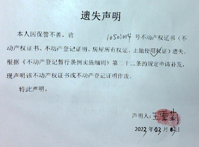 遗失声明(王雪莉)