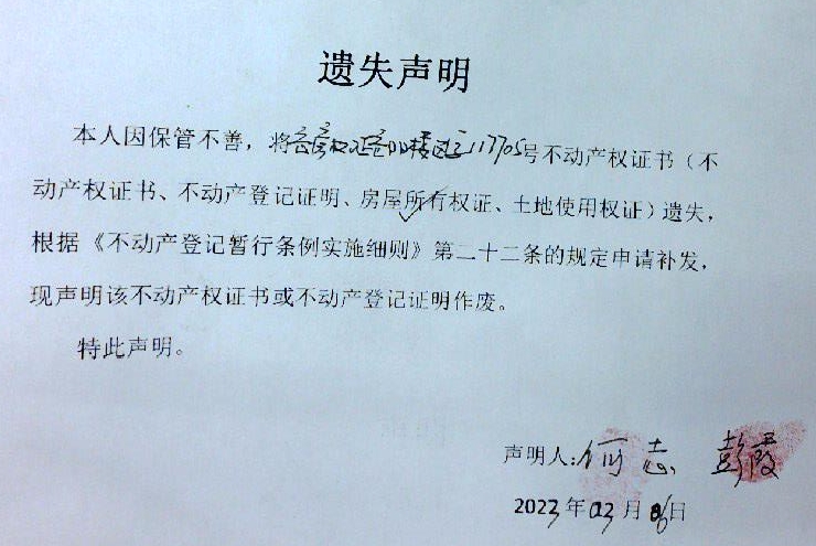 遗失声明(何志、彭霞)2