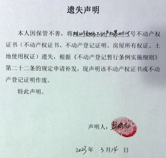 遗失声明(彭晓龙)