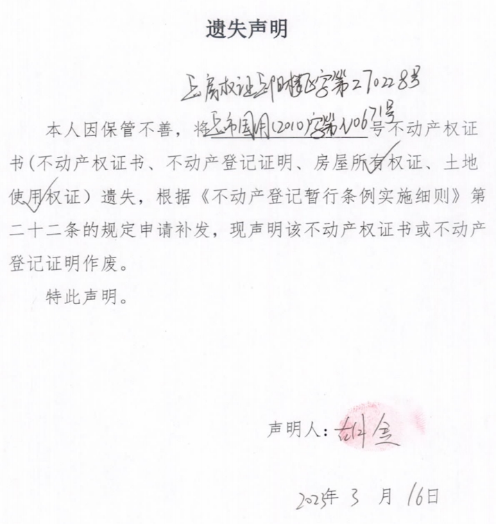 遗失声明(胡金)2