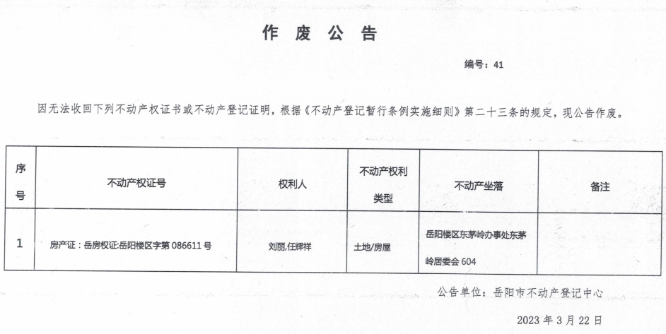 作废公告 编号:41(刘丽、任辉祥)