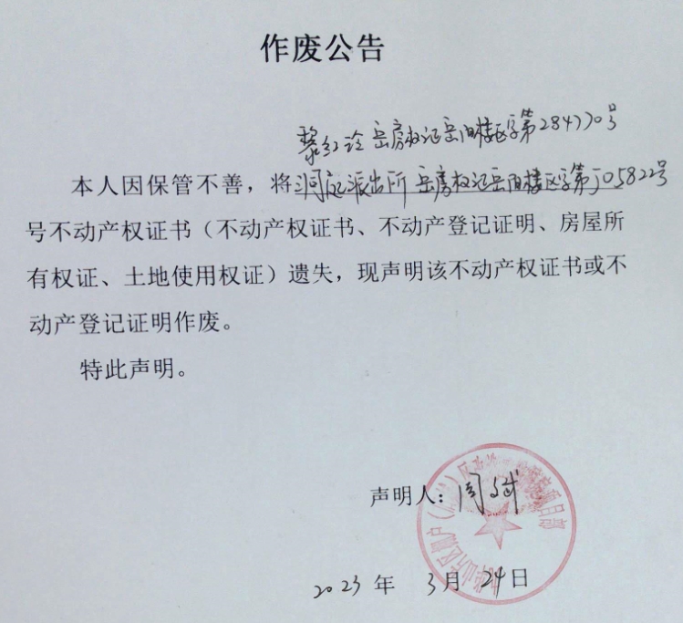 作废公告(九华山二期洞庭项目部不动产权证注销(湖湘大厦))02