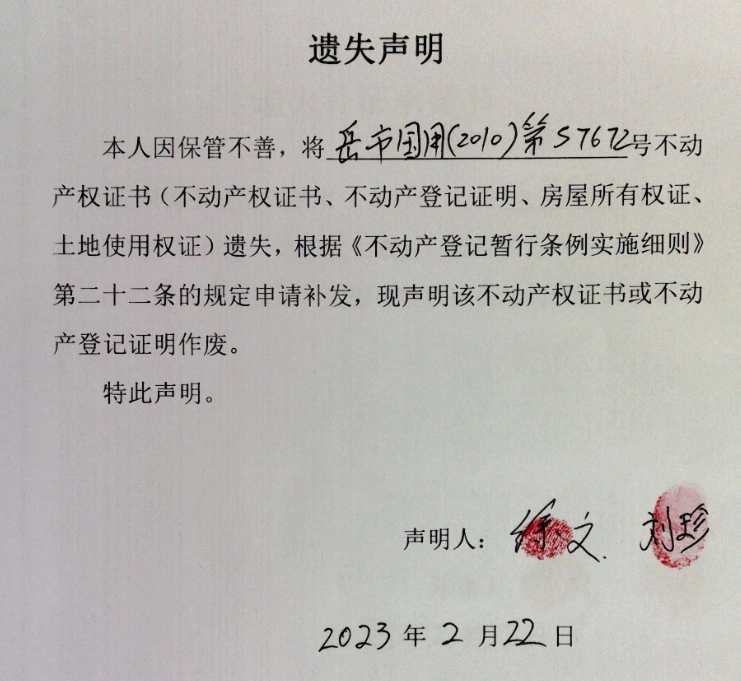 遗失声明(徐文、刘珍)