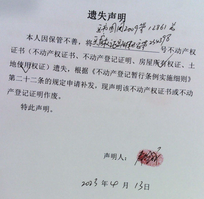 遗失声明(秦登峰)