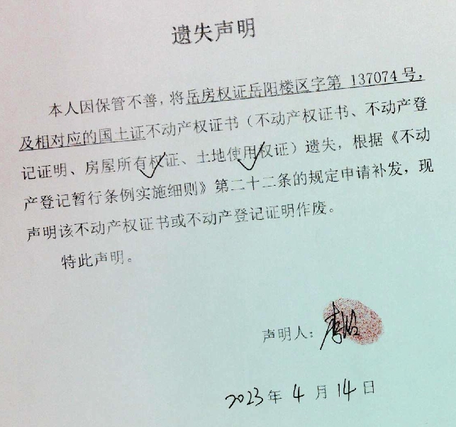 遗失声明(李治)