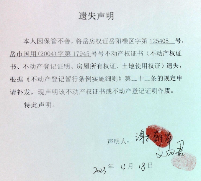 遗失声明(谢朝军、文四君)