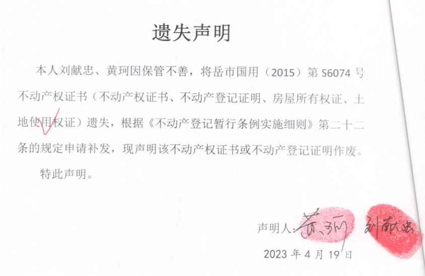 遗失声明(黄珂、刘献忠)