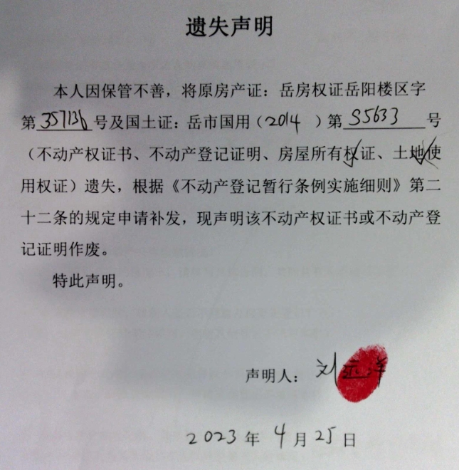 遗失声明(刘远洋)
