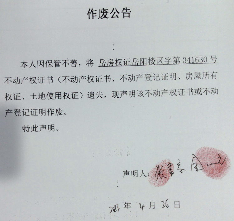 作废公告(岳阳市南湖新区月山管理处(张嘉豪、金从光代)