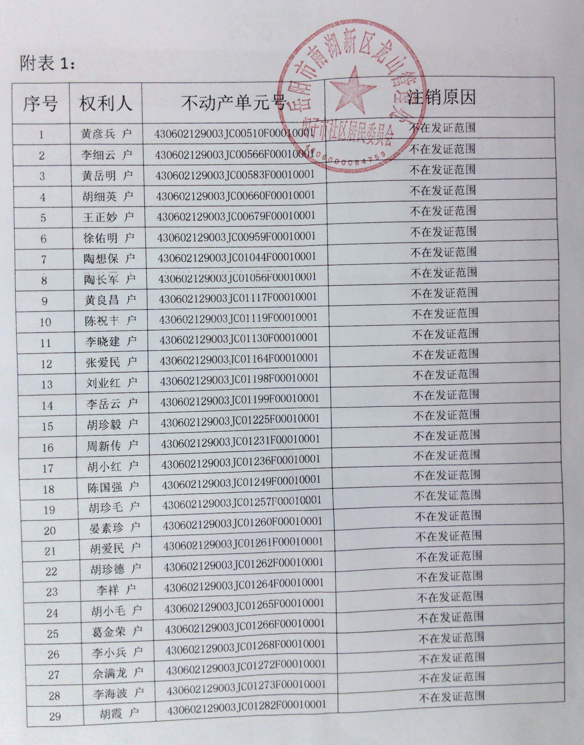 关于湖南新区阁子市社区农房发证申请办理注销登记的公示