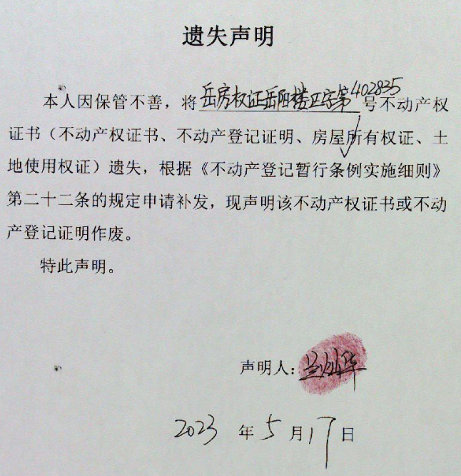 遗失声明(兰灿华)