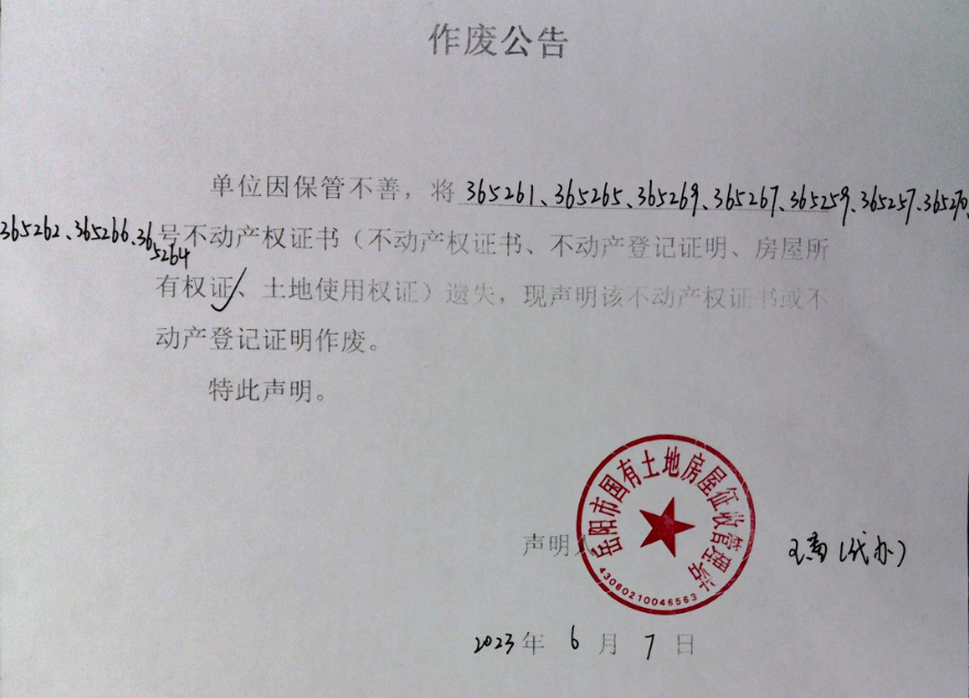 作废公告(岳阳市国有土地房屋征收管理站,王茜代办)
