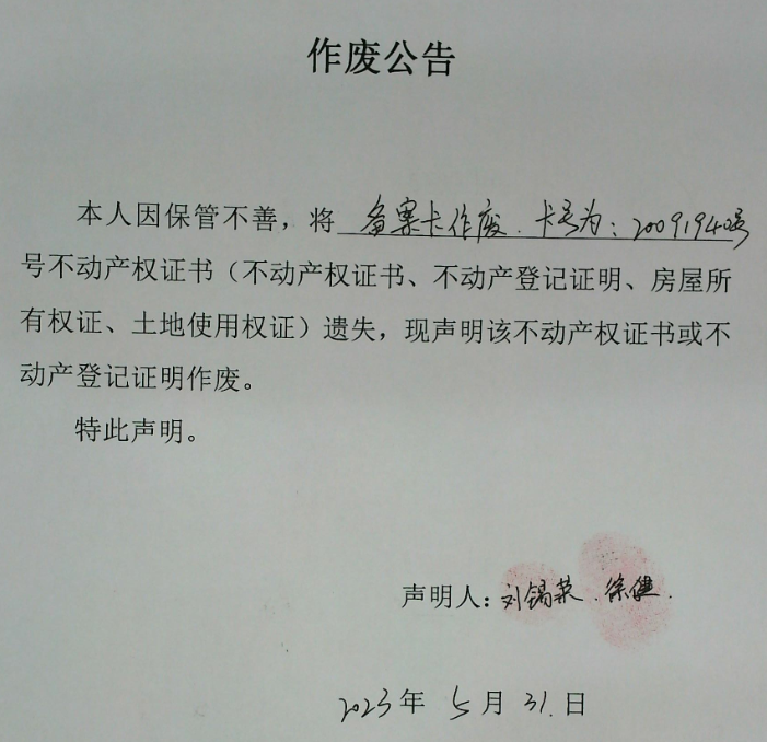 作废公告(刘锡荣、徐键)