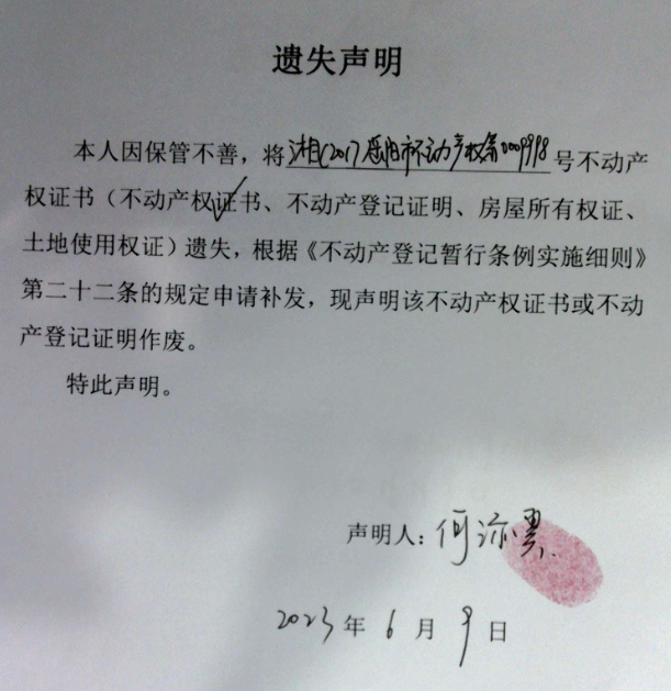 遗失声明(何添翼)