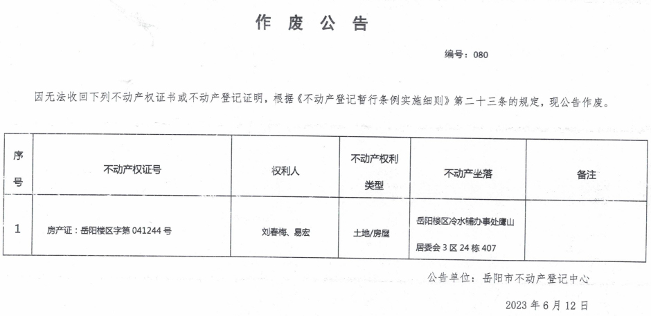 作废公告 编号:080(刘春梅、易宏)