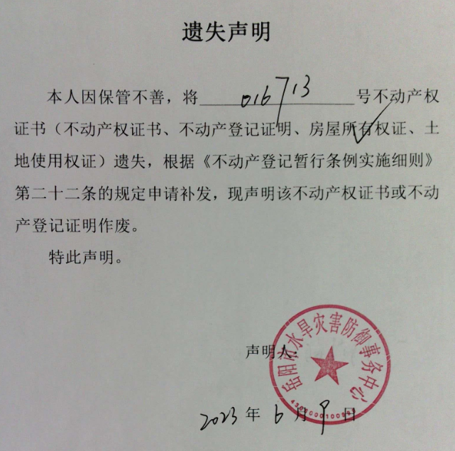 遗失声明(岳阳市水旱灾害防御事务中心)4