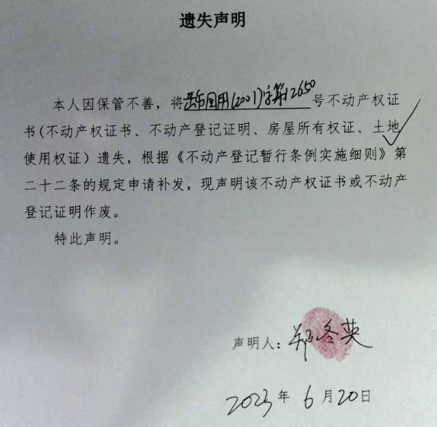 遗失声明(郑冬英)