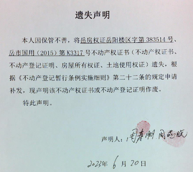 遗失声明(周寿朋、周燕晓)