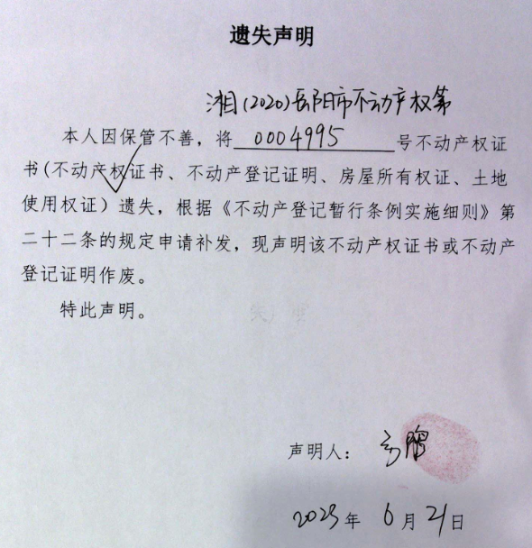 遗失声明(方鹃)