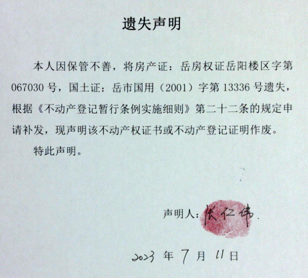遗失声明 (张仁伟)
