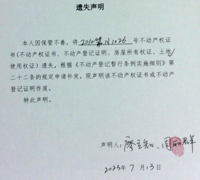 遗失声明(周丽群、廖立知)