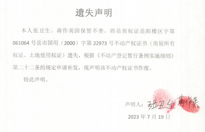 遗失声明(张丑生、蒋作英)