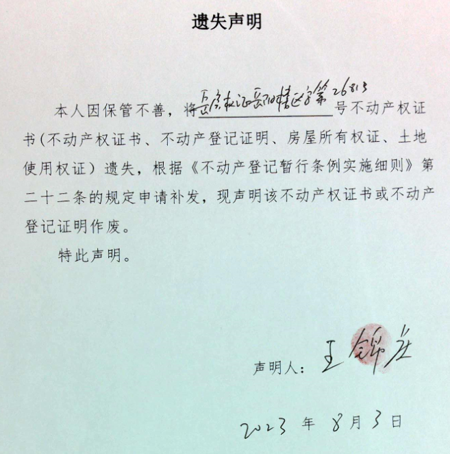 遗失声明(王锦虔)