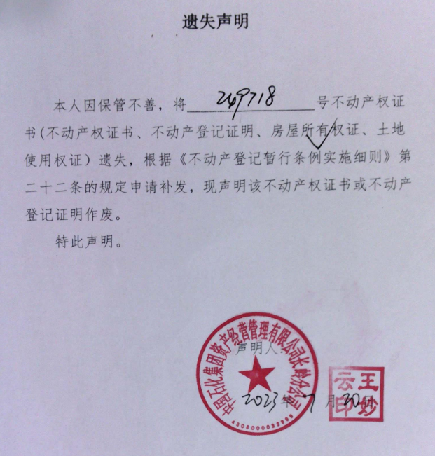 遗失声明(中石化资产经营管理有限公司长岭分公司)