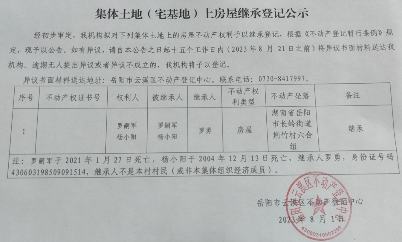 房屋继承公示(罗勇)