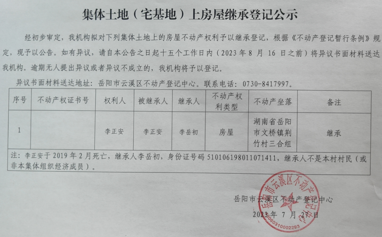 房屋继承公示(李岳初)