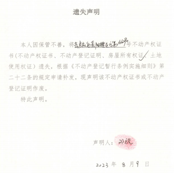 遗失声明(邓旎)