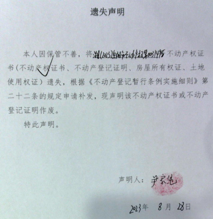 遗失声明(尹家纯)