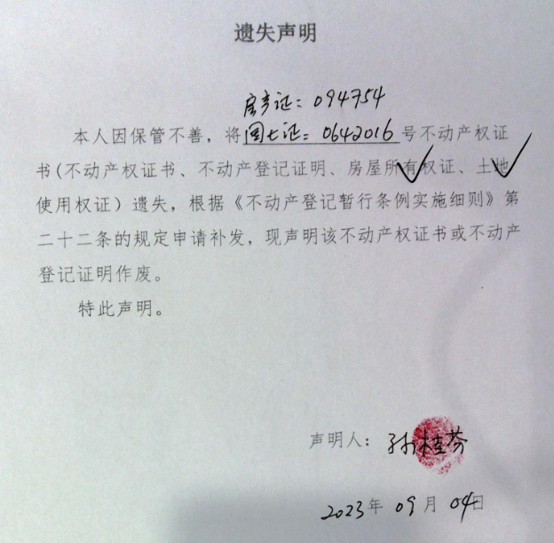 遗失声明(孙桂芬)