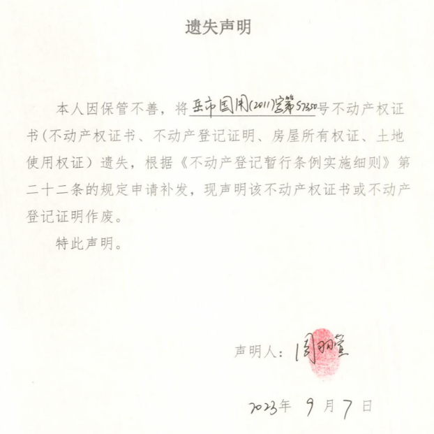 遗失声明(周羽萱)