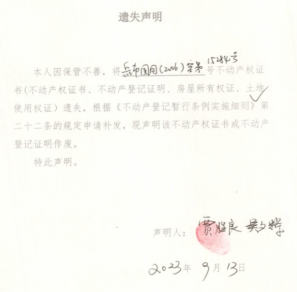 遗失声明(贾胜良、吴夕辉)