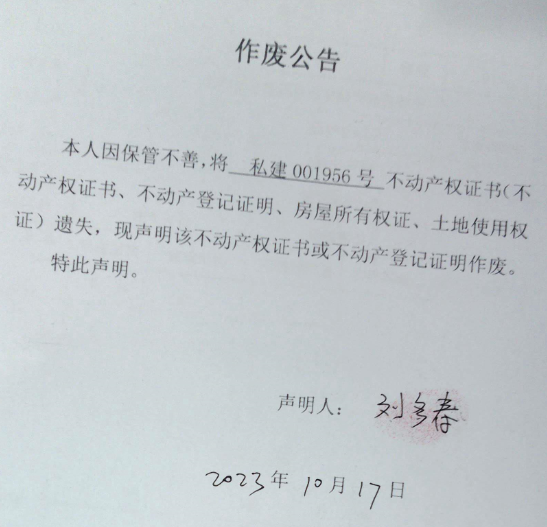 作废公告(刘多春)2