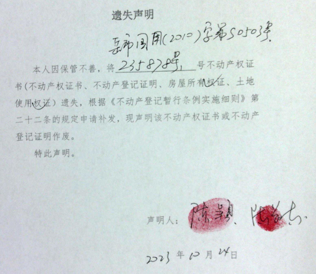 遗失声明(陈颖、陈敬东)