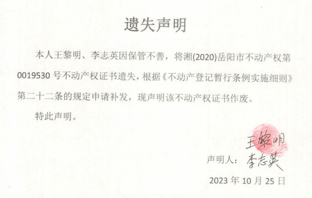 遗失声明(王黎明、李志英)