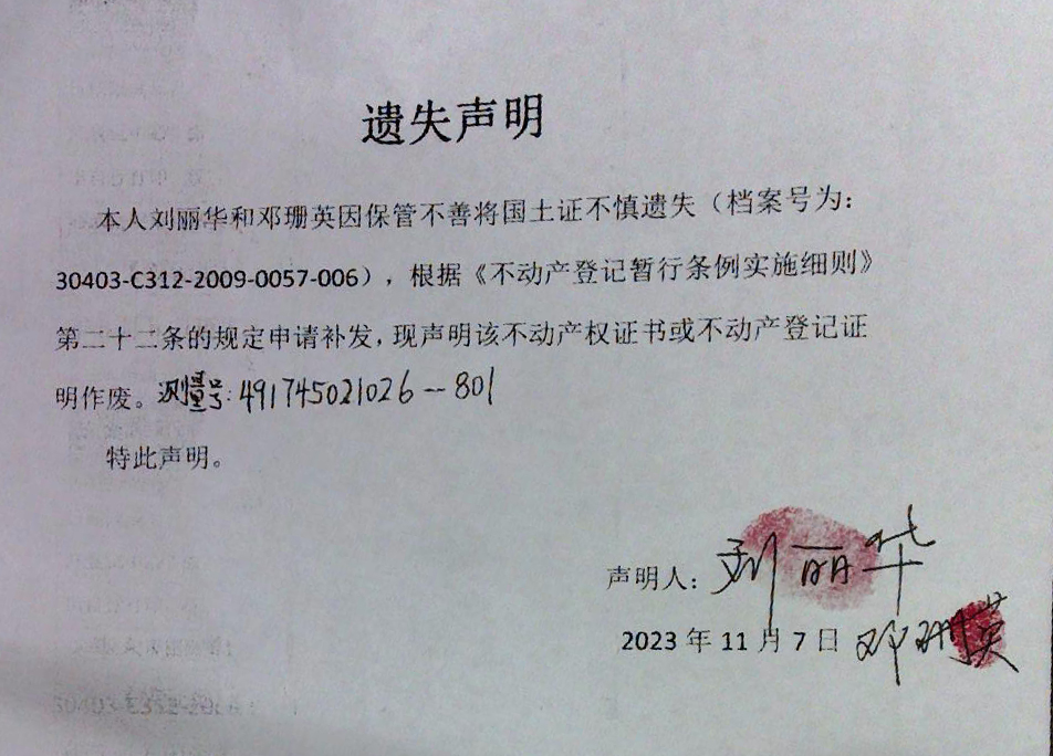 遗失声明(刘丽华、邓珊英)