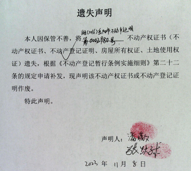 遗失声明(潘薇、张跃球)