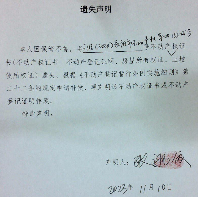 遗失声明(张舰依)